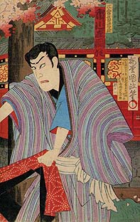 「左團次」の富蔵役此狂言中の大立物笠屋町縁切りの場は落ちついた持前のしうち申し分無し表へ突き出されてから花道の引込みは不思議と思ふ程宜かつた宜かつた跡を見い見い来て木戸口へ突き当たり邪慳に戸へ当たつて明立てをする塩梅旨いもの旨いもの真葛が原殺しの場は凄絶槍絶汽船沈没の場は道具の拵へ申し分無く凄み十分にて善し